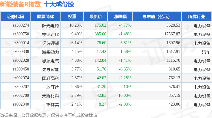 新能装备R(470043)指数十大成份股详情如下: