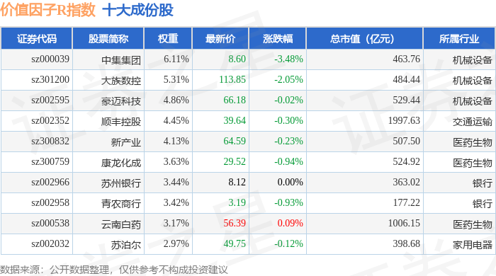 资金流向方面,价值因子R(480056)指数成份股当日主力资金净流出合计40.97亿元,游资资金净流入合计12.52亿元,散户资金净流入合计28.45亿元。成份股资金流向详情见下表: