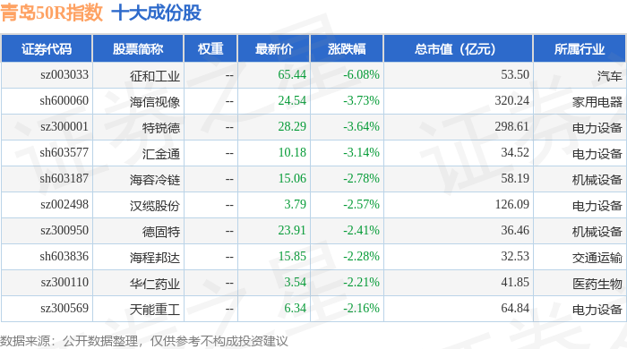 资金流向方面,青岛50R(489011)指数成份股当日主力资金净流出合计2.76亿元,游资资金净流入合计4643.35万元,散户资金净流入合计2.3亿元。成份股资金流向详情见下表: