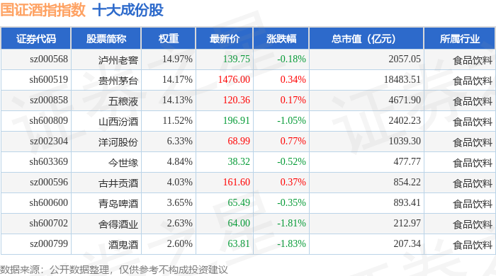 资金流向方面,国证酒指(980049)指数成份股当日主力资金净流出合计2.75亿元,游资资金净流出合计1.0亿元,散户资金净流入合计3.75亿元。成份股资金流向详情见下表: