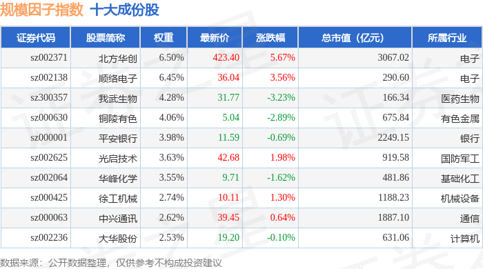 证券之星消息,11月18日,规模因子(980055)指数报收于1924.41点,跌0.33%,成交396.03亿元,换手率1.13%。当日该指数成份股中,上涨的有13家,北方华创以5.67%的涨幅领涨,下跌的有35家,上能电气以8.12%的跌幅领跌。