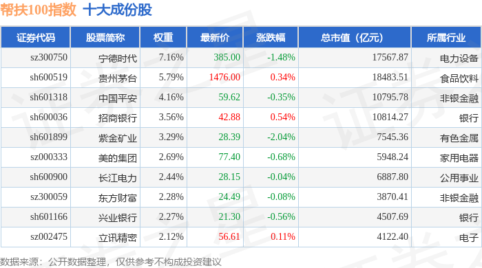 资金流向方面,帮扶100(980065)指数成份股当日主力资金净流出合计127.84亿元,游资资金净流入合计29.35亿元,散户资金净流入合计98.49亿元。成份股资金流向详情见下表: