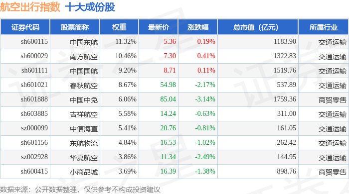 证券之星消息,11月18日,航空出行(980059)指数报收于1619.62点,跌0.98%,成交290.32亿元,换手率2.47%。当日该指数成份股中,上涨的有19家,焦点科技以4.58%的涨幅领涨,下跌的有61家,东百集团以10.0%的跌幅领跌。