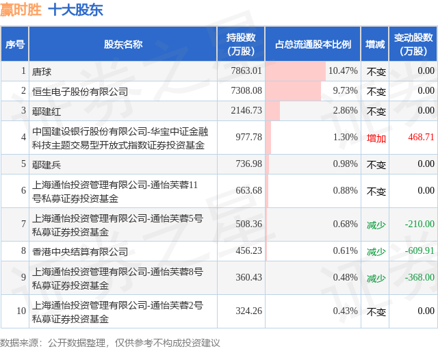 根据赢时胜2025年三季报公布的十大股东详情如下: