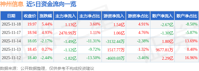 证券之星消息,截至2025年11月18日收盘,神州信息(000555)报收于19.97元,上涨5.44%,换手率16.52%,成交量160.58万手,成交额31.45亿元。