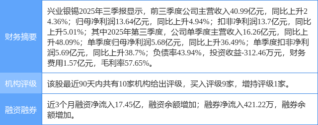 2025年8月27日,中邮证券研究员李帅华,魏欣发布了对兴业银锡的研报《银漫停产影响业绩,看好下半年盈利修复》,该研报对兴业银锡给出“买入”评级。证券之星数据中心根据近三年发布的研报数据计算,该研报作者对此股的盈利预测准确度为69.63%。
