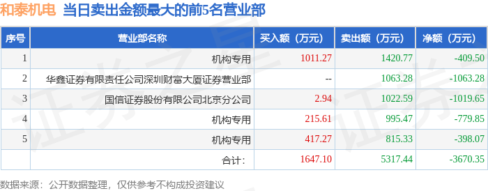 证券之星消息,沪深交易所2025年11月19日公布的交易公开信息显示,和泰机电(001225)因日振幅值达到15%的前5只证券登上龙虎榜。此次是近5个交易日内第1次上榜。