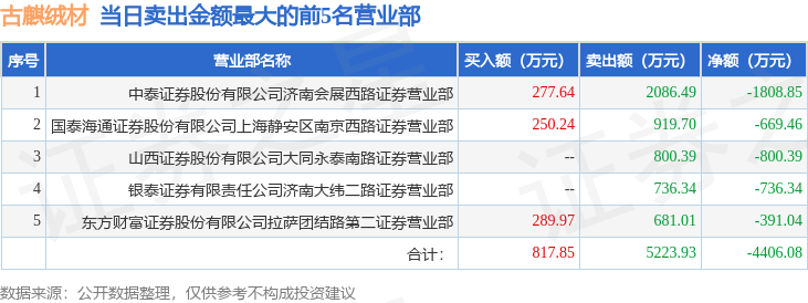 证券之星消息,沪深交易所2025年11月19日公布的交易公开信息显示,古麒绒材(001390)因日换手率达到20%的前5只证券登上龙虎榜。此次是近5个交易日内第3次上榜。