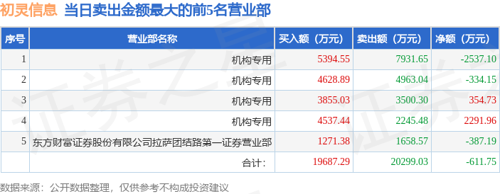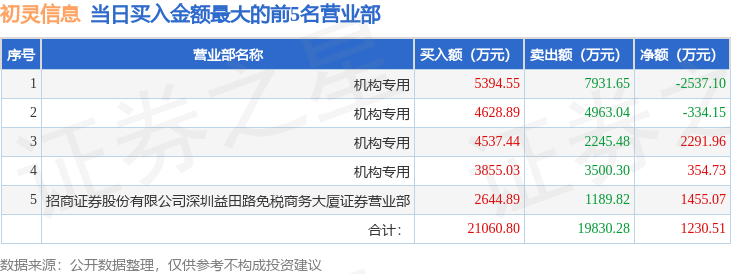 证券之星消息,沪深交易所2025年11月19日公布的交易公开信息显示,初灵信息(300250)因日换手率达到30%的前5只证券登上龙虎榜。此次是近5个交易日内第2次上榜。