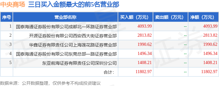 证券之星消息,沪深交易所2025年11月19日公布的交易公开信息显示,中央商场(600280)因非ST、*ST和S证券连续三个交易日内收盘价格涨幅偏离值累计达到20%的证券登上龙虎榜。此次是近5个交易日内第2次上榜。