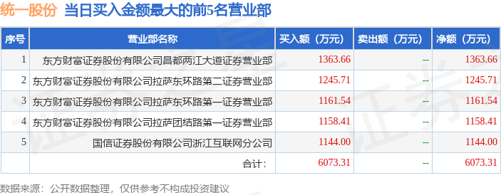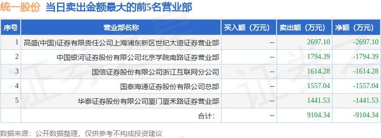 证券之星消息,沪深交易所2025年11月19日公布的交易公开信息显示,统一股份(600506)因有价格涨跌幅限制的日收盘价格跌幅偏离值达到7%的前五只证券登上龙虎榜。此次是近5个交易日内第5次上榜。