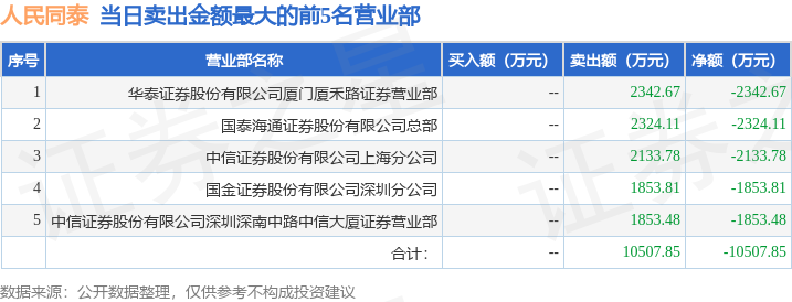 证券之星消息,沪深交易所2025年11月19日公布的交易公开信息显示,人民同泰(600829)因有价格涨跌幅限制的日收盘价格跌幅偏离值达到7%的前五只证券登上龙虎榜。此次是近5个交易日内第4次上榜。