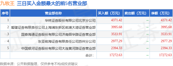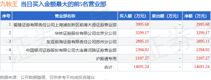 从龙虎榜公布的当日买卖数据来看,北向资金合计净买入2107.27万元。陈小群、越王大道等知名游资榜上有名。(知名游资陈小群一般指中国银河证券股份有限公司大连黄河路证券营业部席位、知名游资越王大道一般指国泰海通证券股份有限公司河源越王大道证券营业部席位,根据市场资料整理,仅供参考)