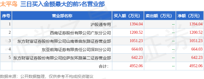 从龙虎榜公布的三日买卖数据来看,机构合计净卖出6150.96万元,北向资金合计净买入237.66万元。粉葛等知名游资榜上有名。(知名游资粉葛一般指东亚前海证券有限责任公司深圳分公司席位,根据市场资料整理,仅供参考)