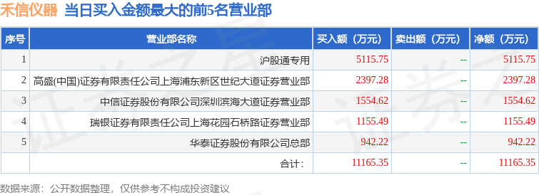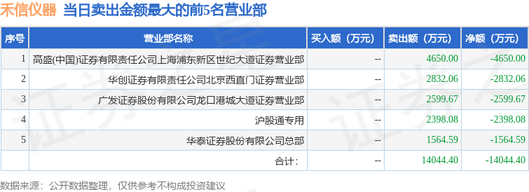 证券之星消息,沪深交易所2025年11月19日公布的交易公开信息显示,禾信仪器(688622)因有价格涨跌幅限制的日收盘价格跌幅达到15%的前五只证券登上龙虎榜。此次是近5个交易日内第1次上榜。