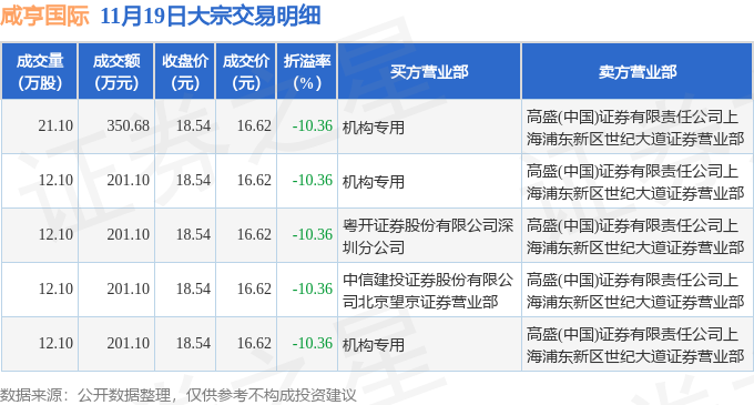 证券之星消息,11月19日咸亨国际发生大宗交易,交易数据如下: