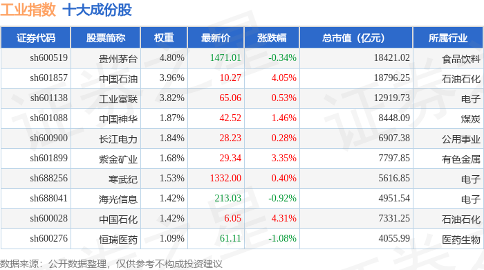 证券之星消息,11月19日,工业指数(000004)报收于3546.09点,涨0.01%,成交5469.96亿元,换手率1.65%。当日该指数成份股中,上涨的有389家,英利汽车以10.06%的涨幅领涨,下跌的有1286家,禾信仪器以20.0%的跌幅领跌。