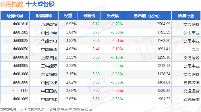 证券之星消息,11月19日,公用指数(000007)报收于4752.94点,跌0.54%,成交260.26亿元,换手率0.75%。当日该指数成份股中,上涨的有22家,世茂能源以10.01%的涨幅领涨,下跌的有112家,长春燃气以8.0%的跌幅领跌。