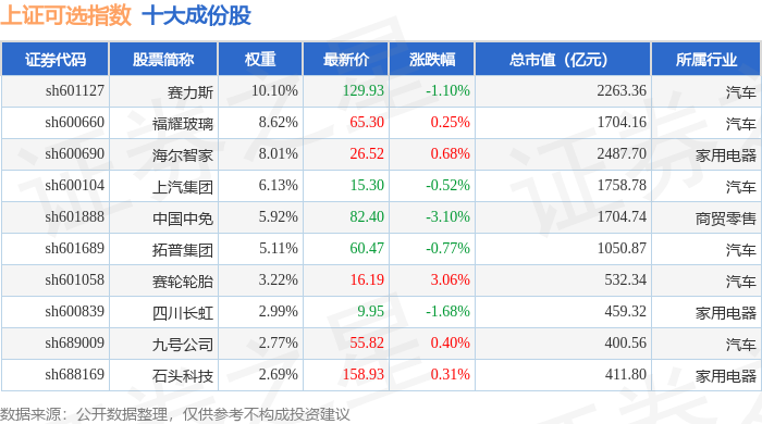 证券之星消息,11月19日,上证可选(000035)指数报收于2927.39点,跌0.16%,成交218.52亿元,换手率0.98%。当日该指数成份股中,上涨的有21家,春风动力以10.0%的涨幅领涨,下跌的有26家,永辉超市以5.02%的跌幅领跌。