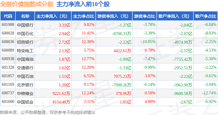 资金流向方面,全指价值(000058)指数成份股当日主力资金净流出合计1.42亿元,游资资金净流出合计4.69亿元,散户资金净流入合计6.11亿元。成份股资金流向详情见下表: