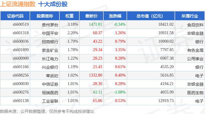 上证流通(000090)指数十大成份股详情如下: