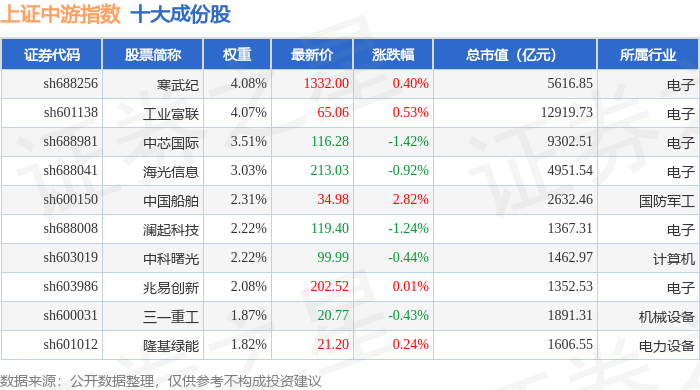 上证中游(000095)指数十大成份股详情如下: