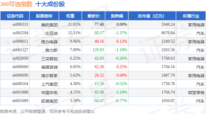 300可选(000911)指数十大成份股详情如下: