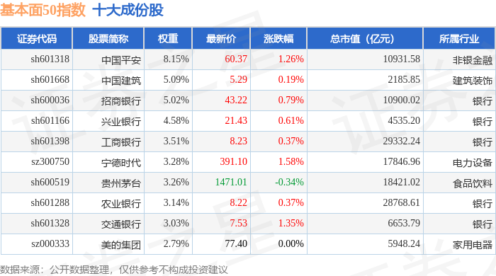 证券之星消息,11月19日,基本面50(000925)指数报收于4705.69点,涨0.68%,成交816.53亿元,换手率0.31%。当日该指数成份股中,上涨的有33家,中国石化以4.31%的涨幅领涨,下跌的有15家,保利发展以1.84%的跌幅领跌。