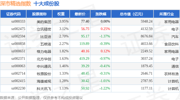 资金流向方面,深市精选(399013)指数成份股当日主力资金净流出合计90.4亿元,游资资金净流出合计2.63亿元,散户资金净流入合计93.04亿元。成份股资金流向详情见下表: