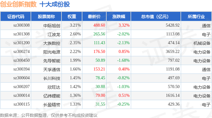 创业创新(399018)指数十大成份股详情如下: