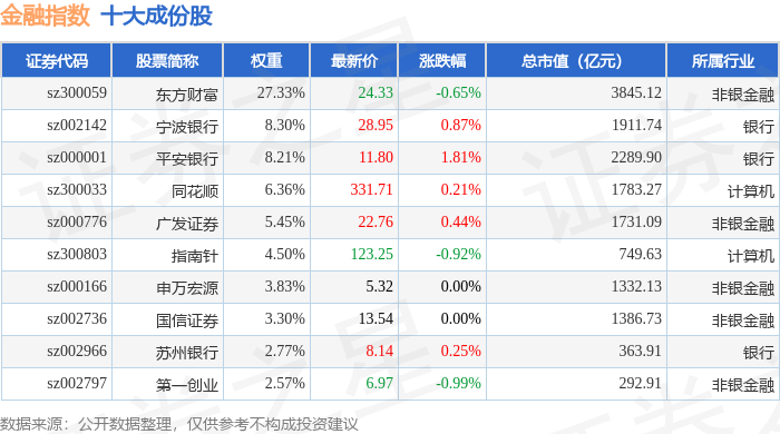 金融指数(399240)十大成份股详情如下: