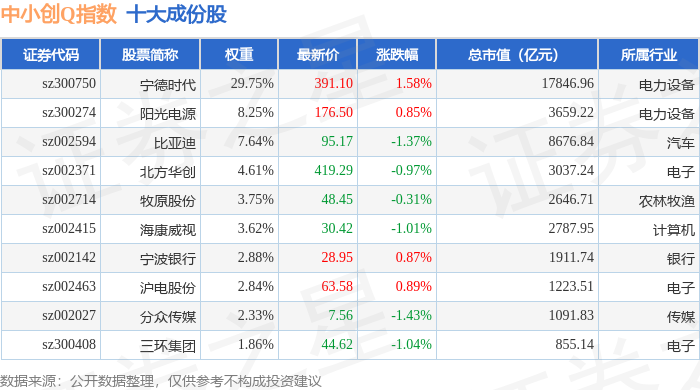中小创Q(399294)指数十大成份股详情如下: