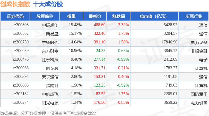 证券之星消息,11月19日,创成长(399296)指数报收于5650.35点,涨0.76%,成交995.58亿元,换手率2.23%。当日该指数成份股中,上涨的有16家,长芯博创以4.97%的涨幅领涨,下跌的有34家,双林股份以5.56%的跌幅领跌。
