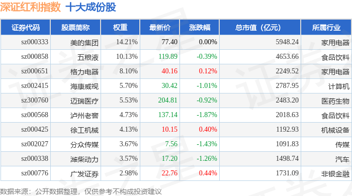 深证红利(399324)指数十大成份股详情如下: