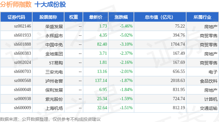 资金流向方面,分析师指数(399354)成份股当日主力资金净流出合计17.3亿元,游资资金净流出合计9.99亿元,散户资金净流入合计27.29亿元。成份股资金流向详情见下表: