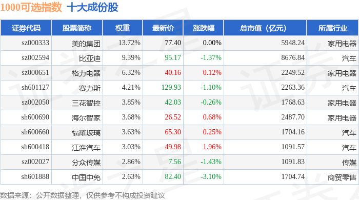 证券之星消息,11月19日,1000可选(399384)指数报收于4067.37点,跌0.4%,成交581.04亿元,换手率1.7%。当日该指数成份股中,上涨的有28家,春风动力以10.0%的涨幅领涨,下跌的有53家,利欧股份以5.11%的跌幅领跌。