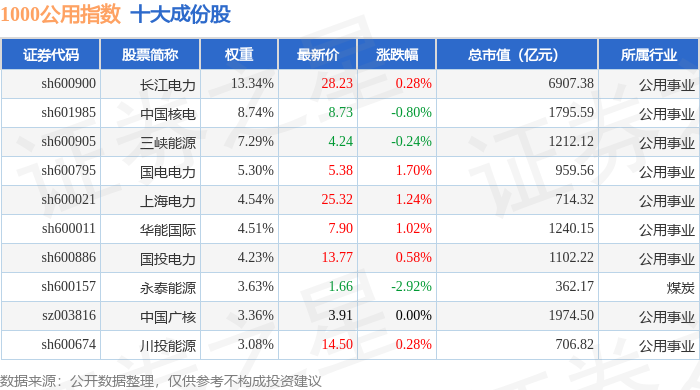 资金流向方面,1000公用(399390)指数成份股当日主力资金净流出合计1.01亿元,游资资金净流出合计1.78亿元,散户资金净流入合计2.79亿元。成份股资金流向详情见下表:
