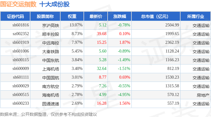 资金流向方面,国证交运(399433)指数成份股当日主力资金净流出合计5.69亿元,游资资金净流出合计1.95亿元,散户资金净流入合计7.64亿元。成份股资金流向详情见下表: