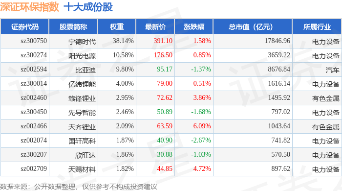 深证环保(399638)指数十大成份股详情如下:
