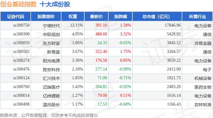 创业基础(399640)指数十大成份股详情如下: