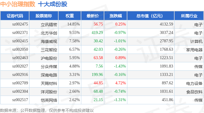 证券之星消息,11月19日,中小治理(399650)指数报收于2504.78点,跌0.28%,成交352.8亿元,换手率1.15%。当日该指数成份股中,上涨的有15家,天赐材料以4.72%的涨幅领涨,下跌的有35家,九阳股份以8.64%的跌幅领跌。