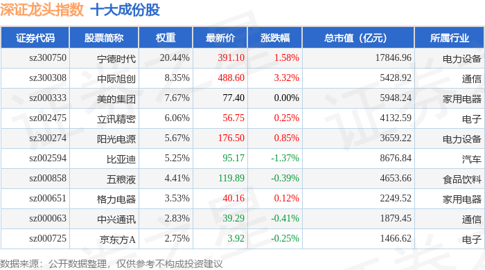 深证龙头(399653)指数十大成份股详情如下: