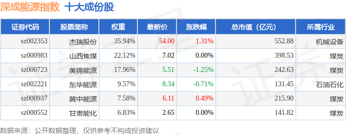 深成能源(399680)指数十大成份股详情如下: