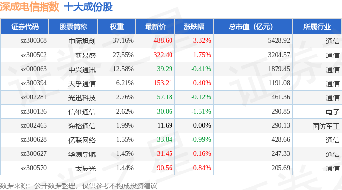 深成电信(399688)指数十大成份股详情如下: