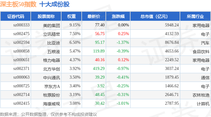 证券之星消息,11月19日,深主板50(399750)指数报收于8891.99点,跌0.2%,成交496.51亿元,换手率0.76%。当日该指数成份股中,上涨的有17家,盐湖股份以5.31%的涨幅领涨,下跌的有30家,泸州老窖以1.87%的跌幅领跌。
