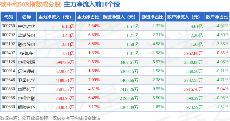 资金流向方面,碳中和50R(480021)指数成份股当日主力资金净流出合计1.47亿元,游资资金净流出合计7.78亿元,散户资金净流入合计9.25亿元。成份股资金流向详情见下表:
