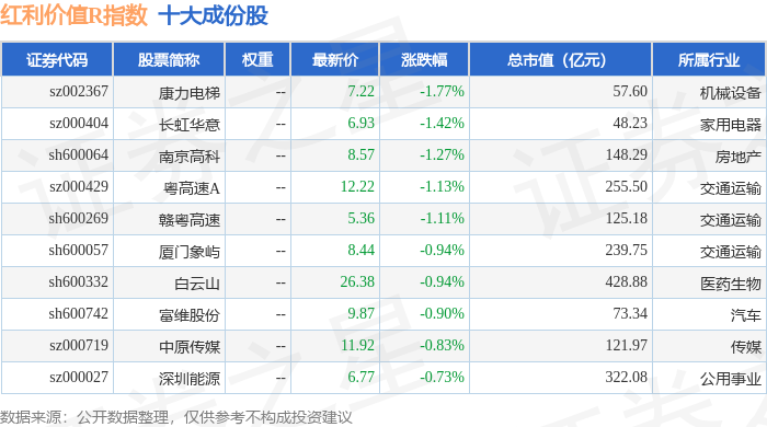 红利价值R(489016)指数十大成份股详情如下: