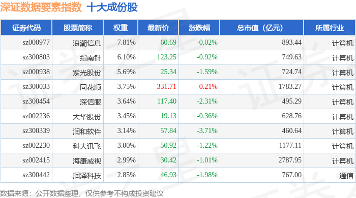 资金流向方面,深证数据要素(970053)指数成份股当日主力资金净流出合计30.71亿元,游资资金净流入合计8.81亿元,散户资金净流入合计21.9亿元。成份股资金流向详情见下表: