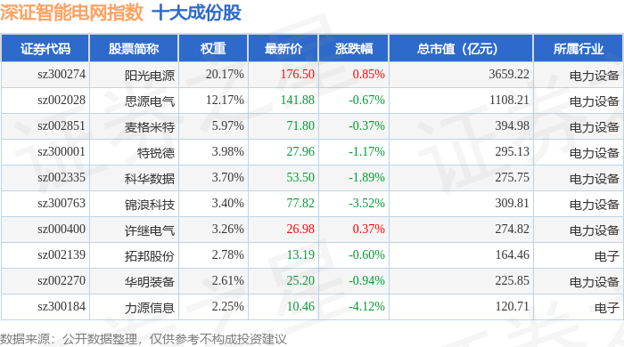 证券之星消息,11月19日,深证智能电网(970054)指数报收于3870.71点,跌0.99%,成交262.29亿元,换手率2.97%。当日该指数成份股中,上涨的有4家,昇辉科技以2.12%的涨幅领涨,下跌的有45家,华自科技以5.01%的跌幅领跌。