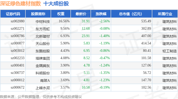 证券之星消息,11月19日,深证绿色建材(970077)指数报收于1334.57点,跌1.22%,成交49.2亿元,换手率1.61%。当日该指数成份股中,上涨的有3家,沧州明珠以3.33%的涨幅领涨,下跌的有27家,玉马科技以4.49%的跌幅领跌。